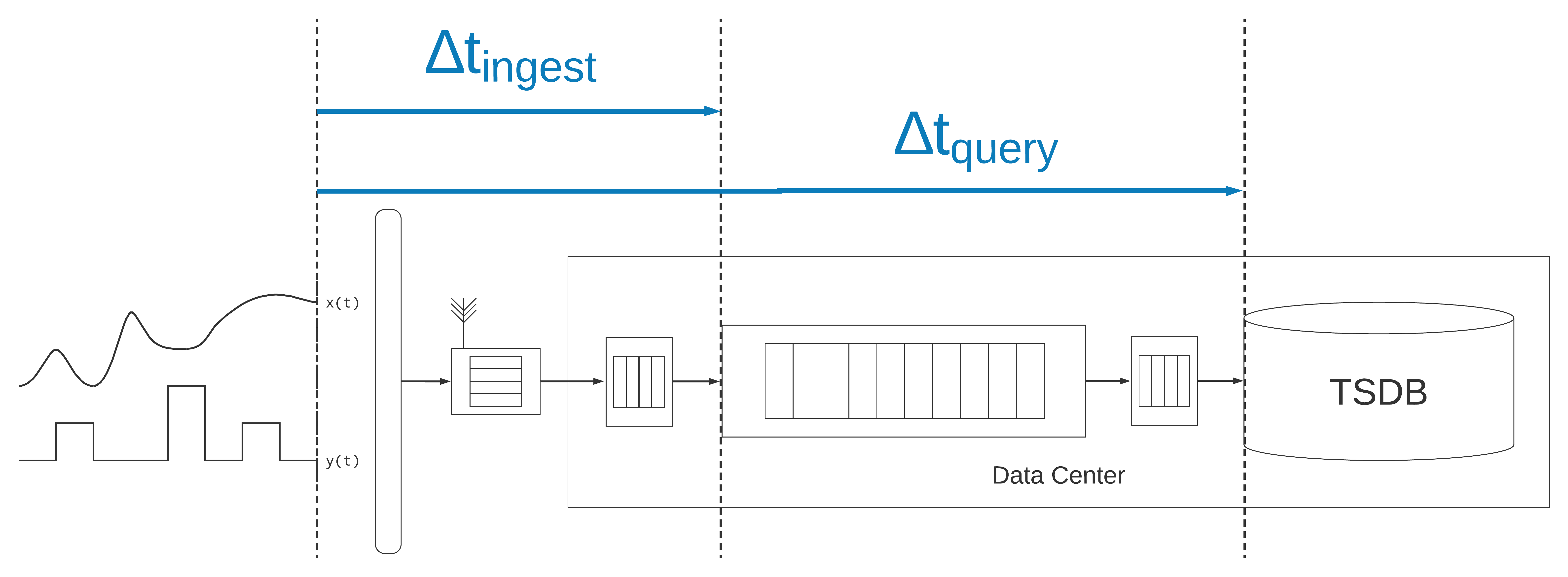 To summarize, time is multifaceted and we need to consider a lot more than just sampled time. We must consider latency, both the time data are ingested and the time they are available for query; derived values when messages are replayed at a later date from the durable message-queue; and the time when anomalous samples are filtered, annotated, suppressed, or deleted. In an operational setting, the complexities of time necessitate a significant investment in the data ingestion pipeline for reliability, scalability, flexibility, and observability. Finally, often we are interested in time-frames, which have a start-time and an end-time, to provide context for time-series data.